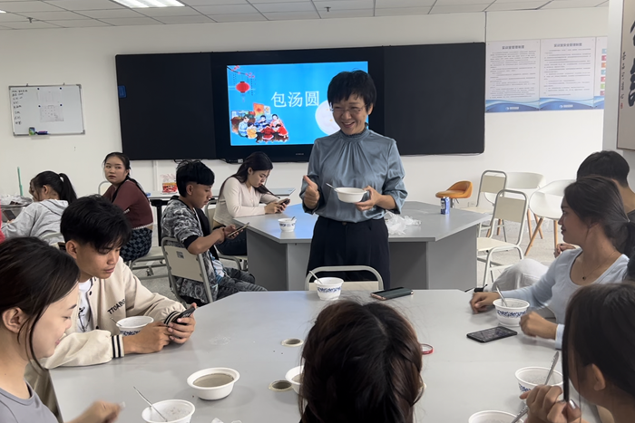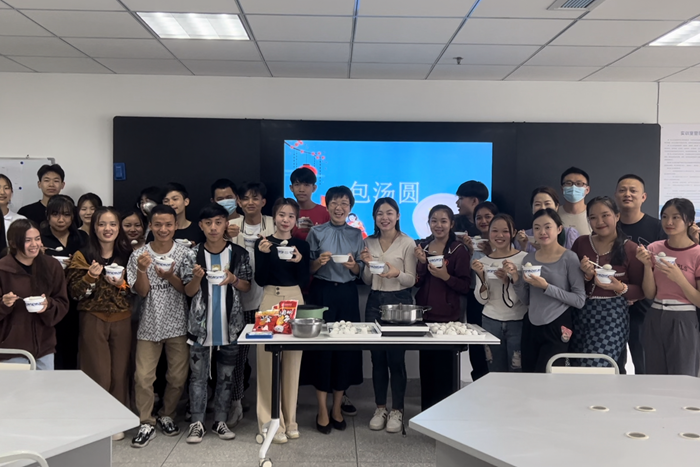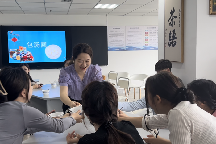 随后,公司老师及志愿者们组织全体职工开展了“包汤圆”活动。职工们现场跟着老师们学习揉面皮包汤圆,大家分工合作、兴致盎然,一边包着汤圆一边聊着两国的习俗,现场气氛活跃,笑语晏晏。